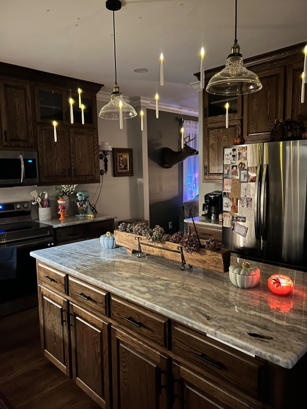 D'un simple coup de baguette, les bougies s'allument dans les airs et diffusent une lumière chaude et ensorcelante, créant une ambiance féerique dans toute la pièce.
