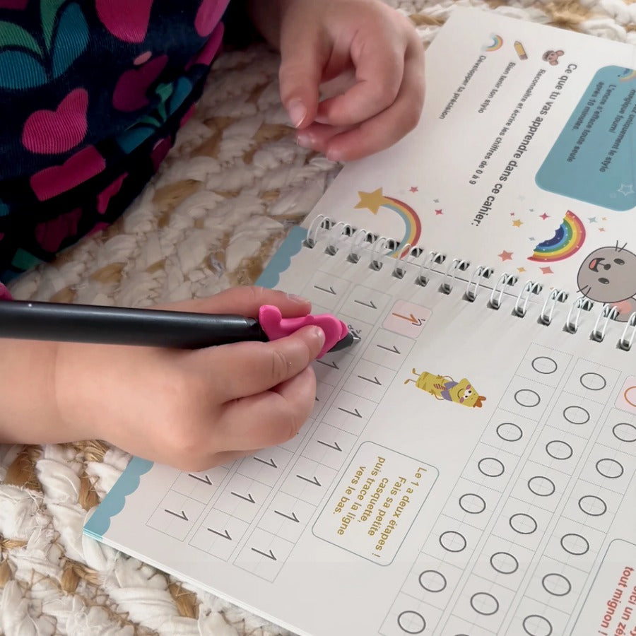 Avec le stylo à encre effaçable, votre enfant peut s'entraîner à écrire encore et encore.