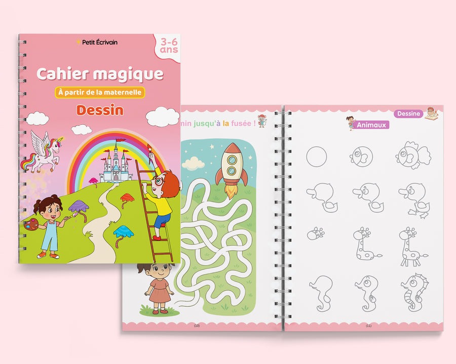 Ce cahier aide à développer la motricité fine et la tenue du crayon.