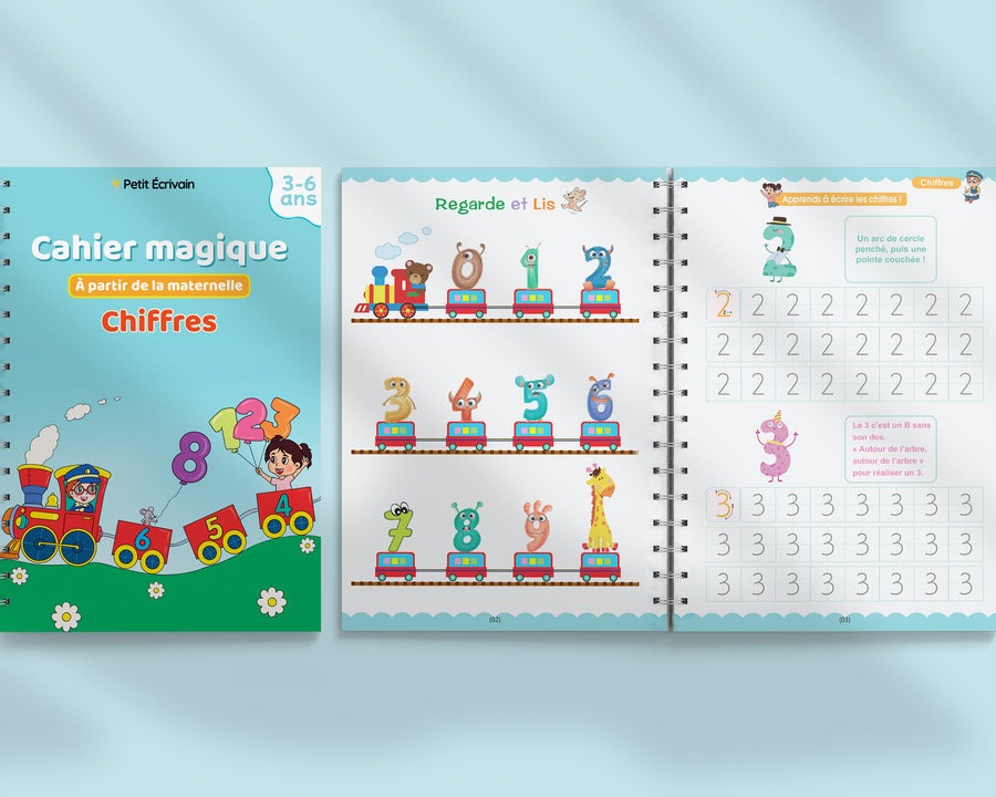 Grâce aux rainures guidées, votre enfant apprend à tenir correctement son crayon et est doucement introduit à l'écriture cursive, en traçant ses premières lettres et chiffres de manière progressive.