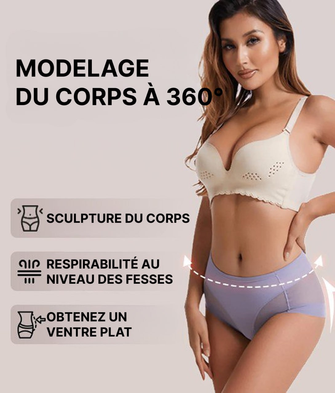 Cette conception vise à rehausser visuellement les fesses et à dessiner une courbe plus harmonieuse.