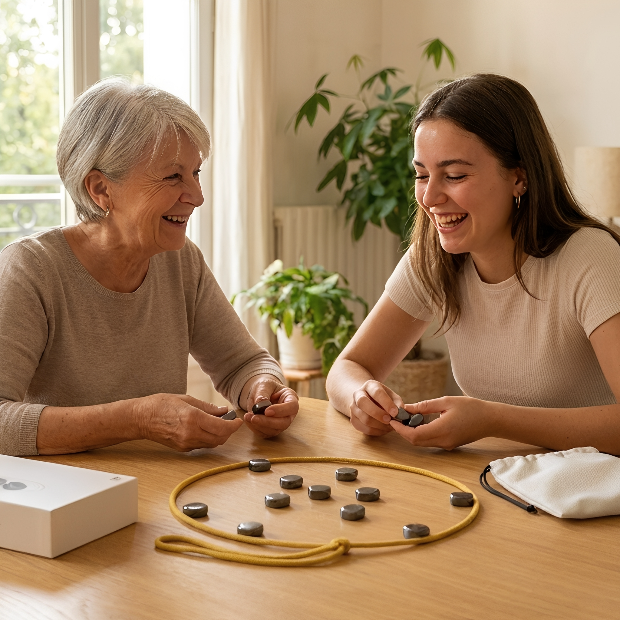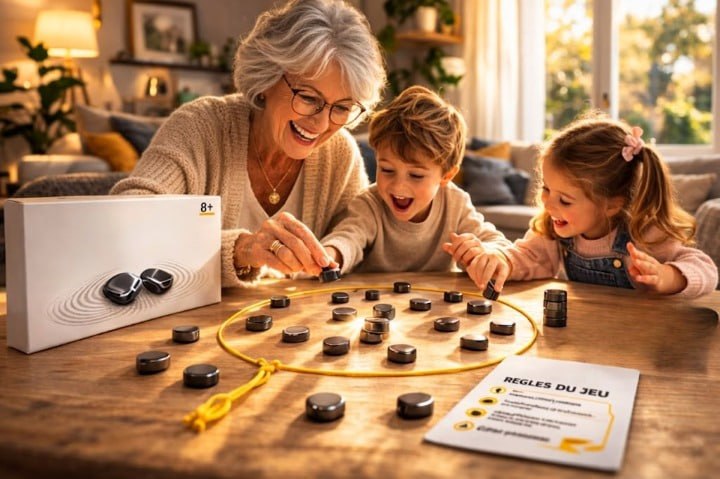 Le Jeu De Pierres Magnétiques est un jeu familial simple et stratégique, pensé comme alternative au temps passé devant les écrans et pour partager un moment ludique entre proches.