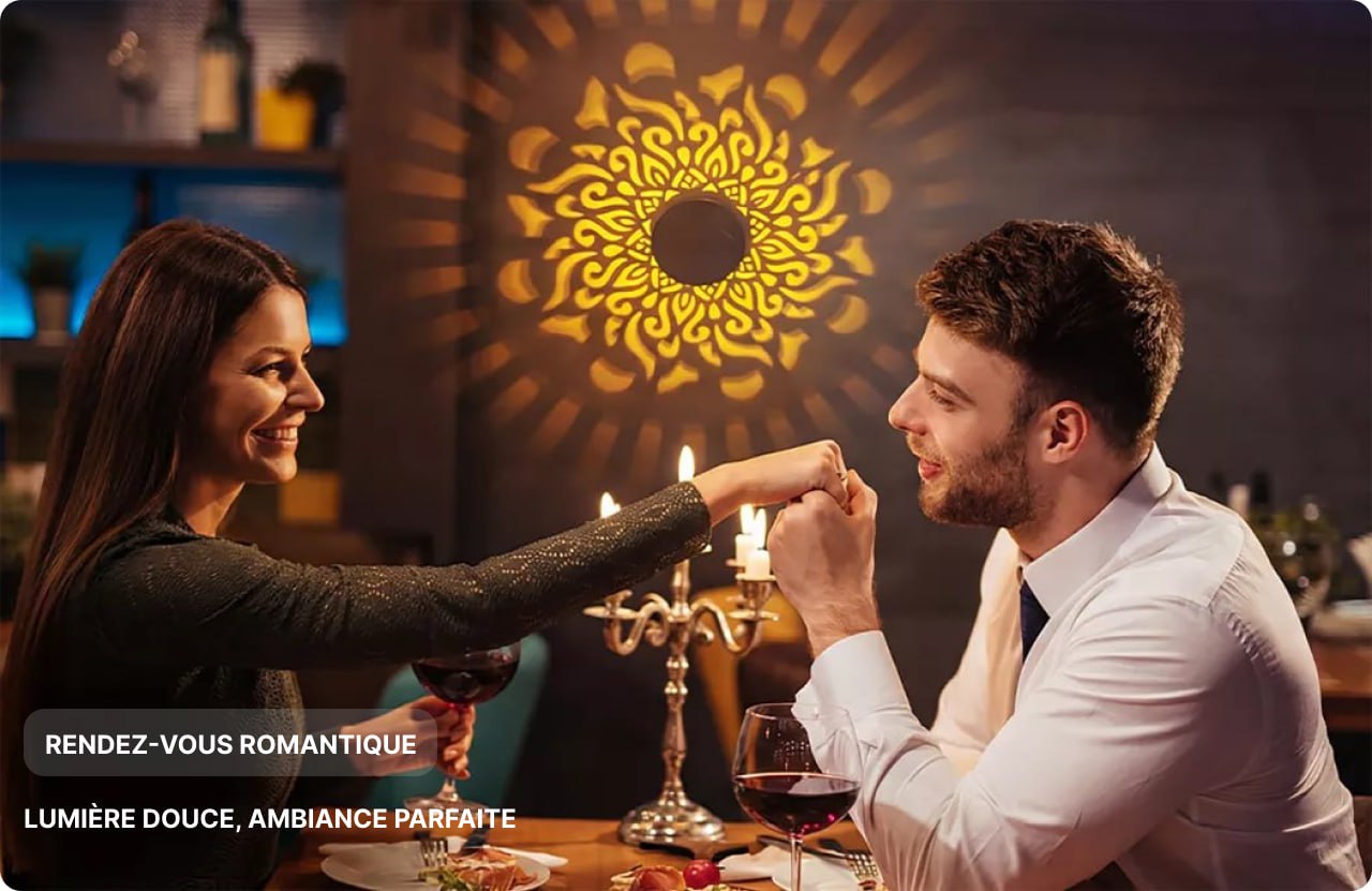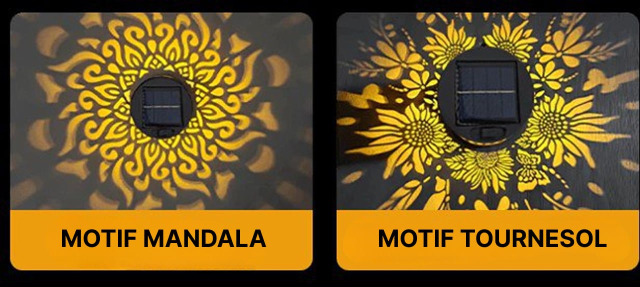Sa lumière ambrée projette de fins motifs mandala pour une ambiance chaleureuse et envoûtante.