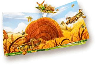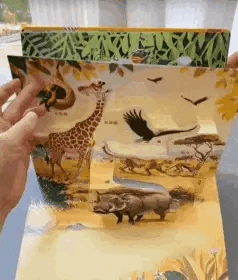 Chaque scène s'ouvre en relief avec de nombreux animaux représentés de façon réaliste.