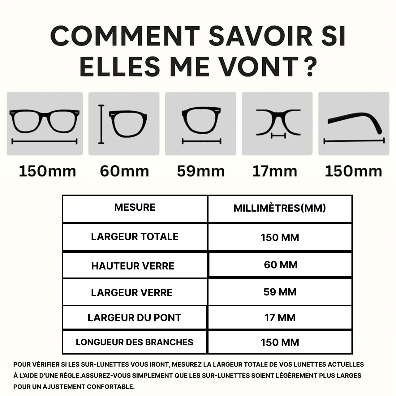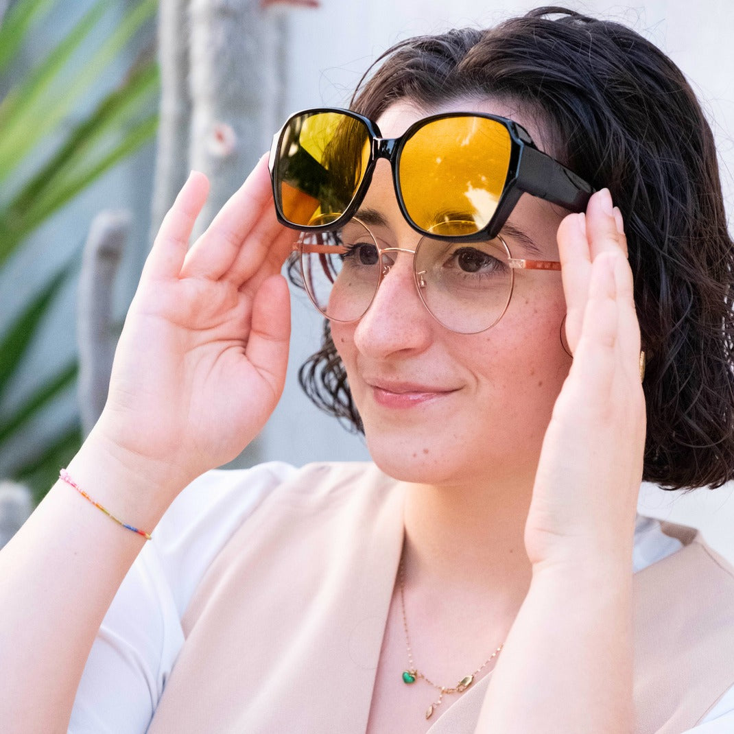 Grâce à leur design enveloppant, les Lunettes Anti-éblouissement se portent directement par-dessus vos lunettes de vue, sans glisser ni serrer.