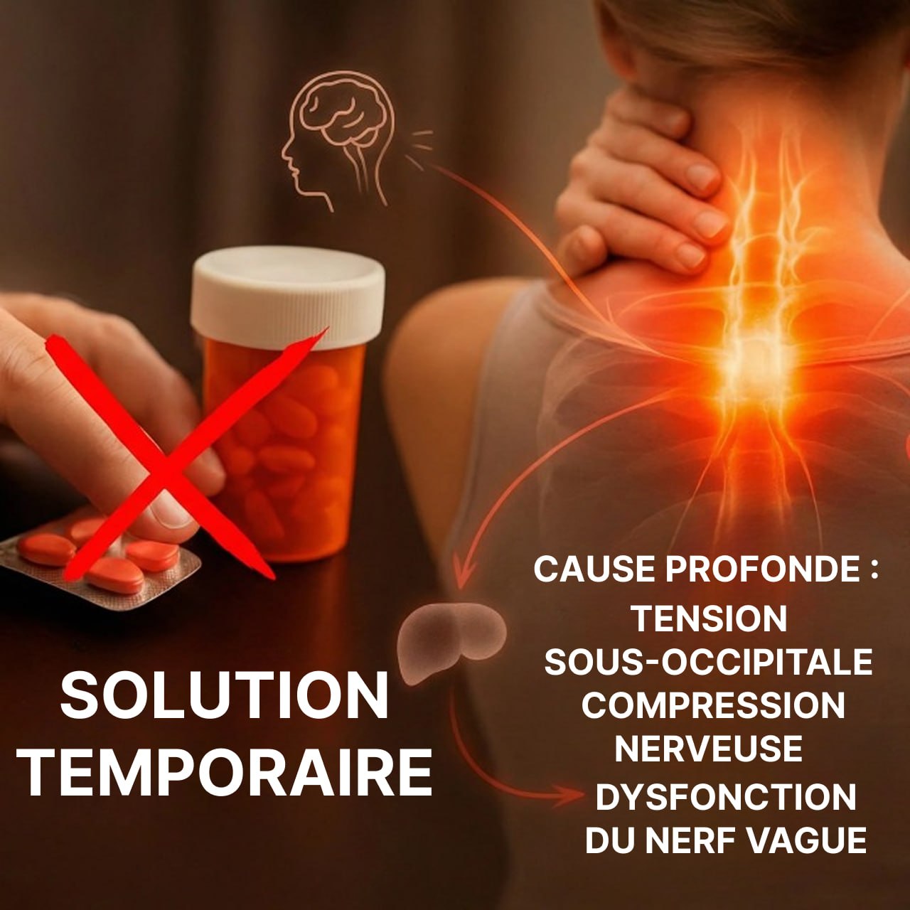 S'appuyer uniquement sur des solutions symptomatiques peut ne pas suffire sur le long terme. Tant que les tensions persistent à la base du crâne, le système nerveux peut rester sollicité.