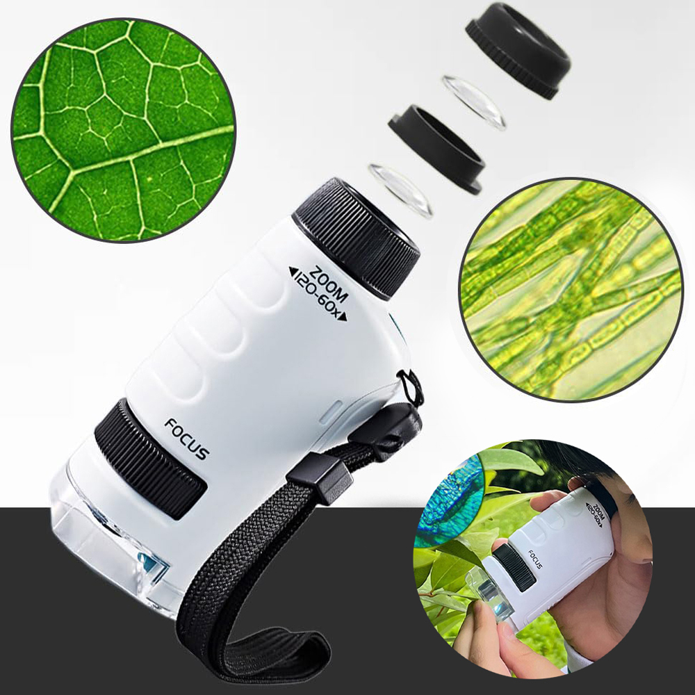 Grâce à un grossissement allant jusqu'à 120×, ils peuvent découvrir de près les plantes, les feuilles, les insectes, le sol et bien d'autres éléments de la nature.