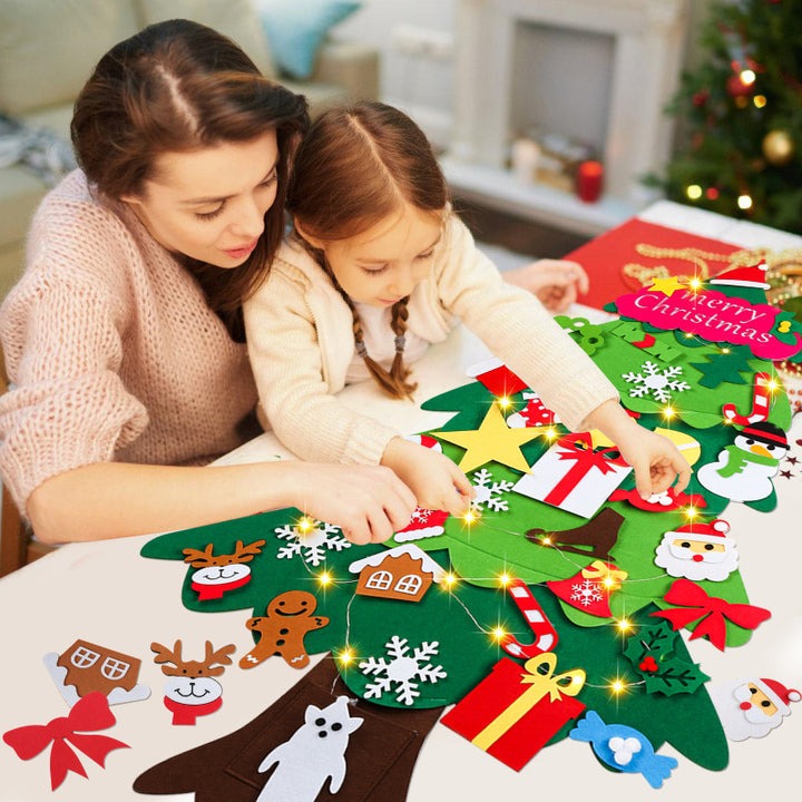 Le sapin est fabriqué en feutrine épaisse, douce et non toxique, pensée pour une utilisation adaptée aux enfants.