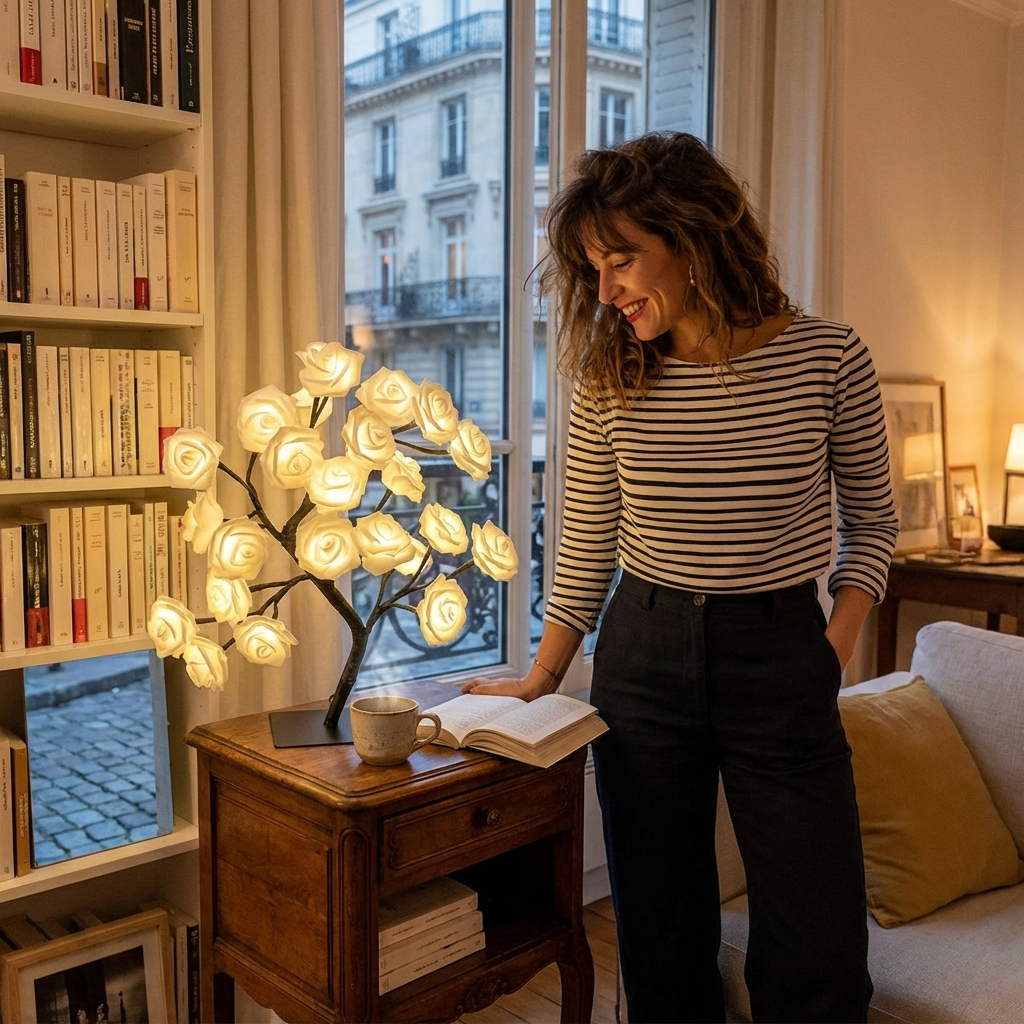La Veilleuse LED Arbre De Roses s'inscrit dans une démarche plus personnelle. Elle associe un design floral délicat à une lumière douce, pour transmettre un message sincère et plein de sens, sans en faire trop.